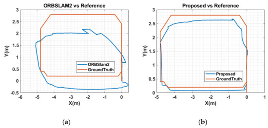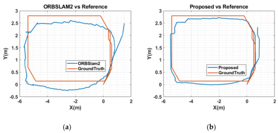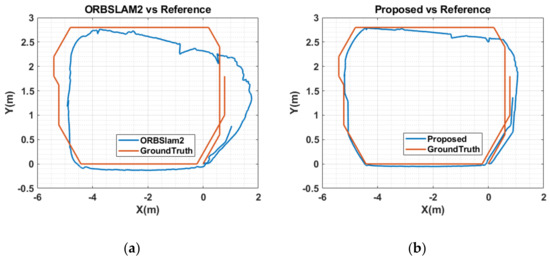 Estimated Trajectories for Floor10_2 Sequence: (a) ORB-SLAM2, (b) SLAM system.