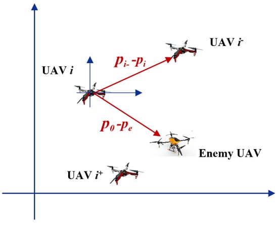 Note that the relative position between UAV i and the enemy UAV is expressed as