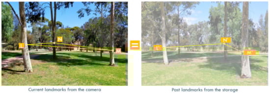 Finally, the computed triangles from the current frame and the database are compared following the similar triangle’s rules. The proposed system considers this condition a positive visual place recognition if it produces a positive outcome.