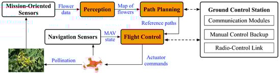 APS will be complex. The system will need to identify flowers, fly to them, pollinate, cooperate with other drones, etc. These steps are best described in a series of modules, the chief of which are environment sensing, flower perception, path planning, flight control, and pollination mechanisms (see Figure 1).