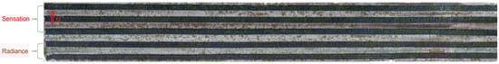 Orthoimages were generated using the collected images with the software Pix4D® to help create a flower distribution map. Orthoimages are a set of aerial photos which have been stitched together and geometrically rectified to account for distortions during image capture []. An orthoimage could be used to measure true distances and accurately represent the Earth’s surface. With the help of orthoimages, it was simple to localize flowers and build distribution maps. An example of the generated orthoimage is shown in Figure 3.