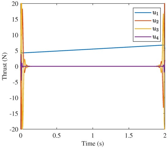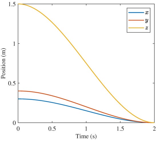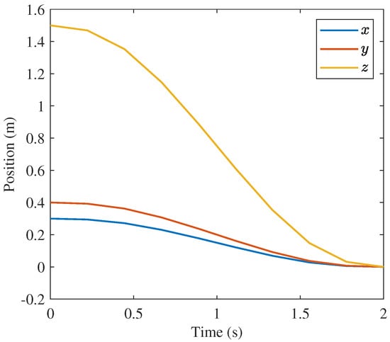 UAV path planning is a popular topic of research due to the growing adoption of UAVs for a wide variety of applications. In general, path planning seeks to find a path for the UAV or other agent that is feasible and will meet the mission requirements. For example, a popular UAV application is search and rescue. In this context, path planning would involve guiding a swarm of drones through the search area in paths that cover the most possible ground in the fastest fashion. Path planning problems often can be formulated as optimization problems. One example of this is the flying sidekick travelling salesman problem (FSTSP) that has been developed for drone-assisted parcel delivery []. This problem seeks to use drones in tandem with delivery trucks to minimize delivery trip cost, and the path of both the truck and drone are optimized. Collision avoidance may be integrated into such applications. One method in which path planning can incorporate collision avoidance in complex environments is to generate a flight corridor, defining a simplified region that the path can be optimized within []. One attraction of this approach is that there are methods of ensuring such regions are convex, which could be highly effective if it were coupled with the convex optimization flight control method developed in this paper.