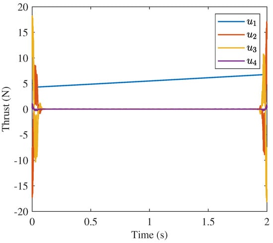 The corrective behavior of the MPC framework is clear from this demonstration. The controls adjust to the fact that the quadrotor is not in the previously predicted position. These embedded adjustments increase the likelihood of a successful mission under inevitable uncertainties and disturbances in real-world implementation.
