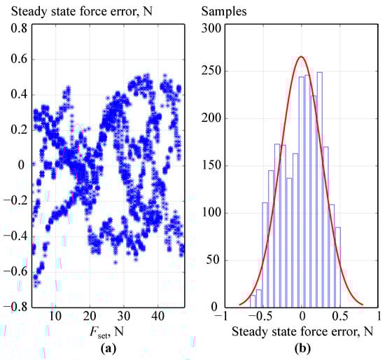(a) Steady state grasping force error. (b) Histogram of steady state grasping force error.