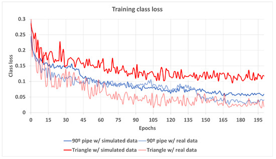 By comparing the results generated by the previous pipeline and the proposed pipeline in cluttered scenarios, displayed in Figure 21, it is possible to conclude that the proposed approach has more accuracy in these types of scenarios. As observed, the instance-segmentation technique produces similar results related to the mask. However, the new proposed pipeline can distinguish each singular object when they are close together, minimizing the error of estimating a segmentation with more than one object. In addition, the triangular-wall-support model has several segmentation difficulties because of its geometry, color, and material. Several experiments were realized with the previous pipeline, and it was noticed that with four objects in densely cluttered scenarios (composed of 90 flow-pipe model objects), several segmentation difficulties arose, and it achieved the worst results for the triangular-wall-support model, having difficulties with only one object in the scene, due to the height difference between the background and the model being too small, showing it was merely accurately segmenting when there was a significant plane or cluster difference.