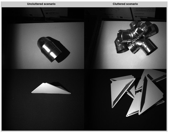 Grasping planners are employed to plan how to pick an object in an efficient manner and without collisions. Buchholz et al. [14] proposed an optimal grasping-pose-estimation system with collision avoidance for bin-picking problems, allowing one to reduce system cycle number. He et al. [15], developed a novel approach to scooping based on a mobility analysis with a two-finger gripper. Ichnowski et al. [16] presented an algorithm that speeds up the execution of a bin-picking robot’s operations based on a grasp-optimized motion planning. Leão et al. [17] suggested a bin-picking solution for entangled objects; the algorithm represents a curved tube as an ordered list of cylinders and joints using point-cloud-analysis algorithms.