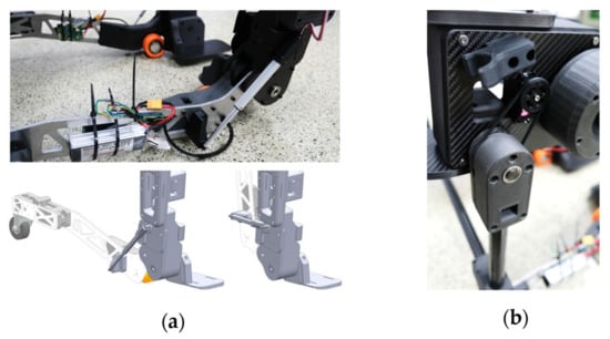 (a) Wheel module’s retraction mechanism using the Actuonix linear actuator; (b) Foldable chair leg driven through the elastomer cord.