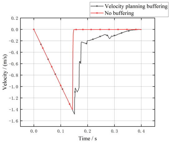The process of the velocity planning buffer was to reduce the contact speed mutation of the thigh and hip joint, which reduced the contact force and contact impact. The realization process was to change the rotation velocity of the knee joint during contact, obtain the rotation velocity of the knee joint through ADAMS simulation and then the motor was controlled in the experiment.