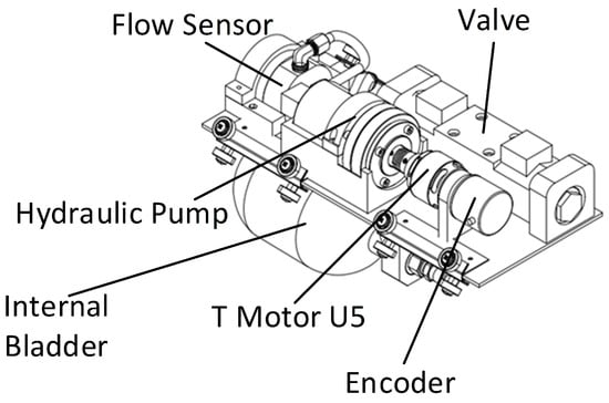 The rotation speed of the hydraulic pump motor is measured using a motor rotation sensor as feedback to the BeagleBone Black. Subsequently, the speed of the motor controller is determined using the proportional, derivative, and integral control methods. Control of the motor rotation speed is necessary due to the maximum rotational speed limitation of the hydraulic pump, while the rotation speed can be varied depending on the environmental pressure. A fluid displacement rotates the flow sensor that provides pulse signal feedback to calculate the internal bladder volume (Y). Moreover, if the difference between the desired internal bladder volume (X) and the internal bladder volume (Y) is less than the tolerance value, the BeagleBone Black gives a stop signal to the motor and relay.