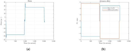 Gliding motion simulation for pitch and actuator. (a) Simulation gliding motion with pitch axis; (b) the actuator motion in a gliding motion.