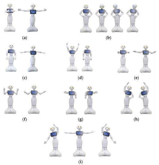 - Sanghvi, J.; Castellano, G.; Leite, I.; Pereira, A.; McOwan, P.W.; Paiva, A. Automatic Analysis of Affective Postures and Body Motion to Detect Engagement with a Game Companion. In Proceedings of the 6th International Conference on Human-Robot Interaction, Lausanne, Switzerland, 6–9 March 2011; pp. 305–312. [Google Scholar]