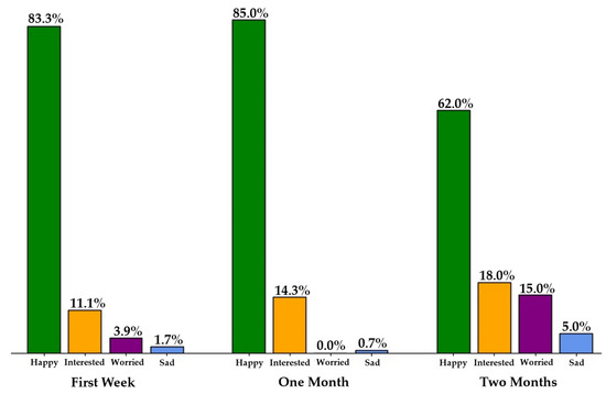 Self-reported valence is obtained during the first week, after one month, and at the end of the study (i.e., two months) and the robot perception questionnaire was administered after one month and two months to investigate any changes in user valence towards the robot and perceptions of the robot as the HRI study progressed.