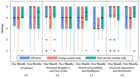 - Kanda, T.; Sato, R.; Saiwaki, N.; Ishiguro, H. A Two-Month Field Trial in an Elementary School for Long-Term Human–Robot Interaction. IEEE Trans. Robot. 2007, 23, 962–971. [Google Scholar] [CrossRef]