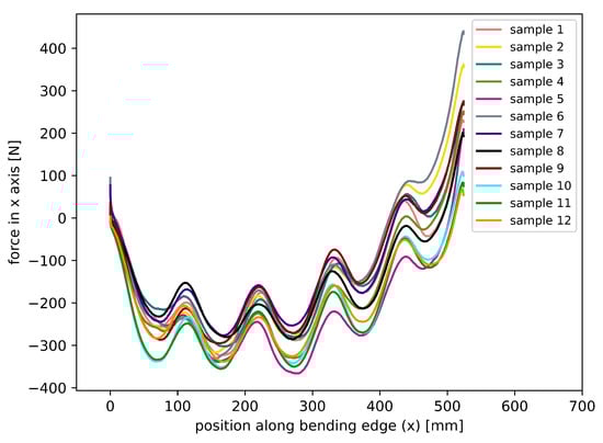 Figure 9 exemplarily shows the force measurement data in the X direction along the bending edge for the same twelve samples.