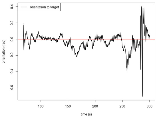 The distance and orientation of the robot to the tractor’s pose were recorded in order to assess the evolution of the errors of both the distance and the angle (Figure 8).