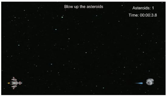 Figure 3 shows the default screen for the asteroids game. In this game, the player controls a character in a spaceship via a camera, in a scenario that represents a battle against asteroids in outer space. These asteroids appear on the screen over time, in predefined positions.