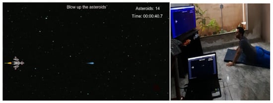 Another factor was the scoring method initially implemented. In some cases, this could give the player the impression that he was facing a penalty if he could not complete what was needed to score points. This problem was resolved and everything that could give this impression was removed, such as the asteroids that moved to collide with the spaceship that the player controlled if they were not destroyed in time, which could generate a sudden movement from the patient to divert the spaceship. We solved this problem by causing the asteroid to appear slowly on the screen, and even when it was not destroyed, it stopped in a position far from the spaceship, waiting for the new position of the spaceship for its destruction.