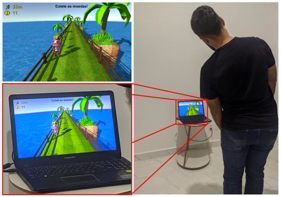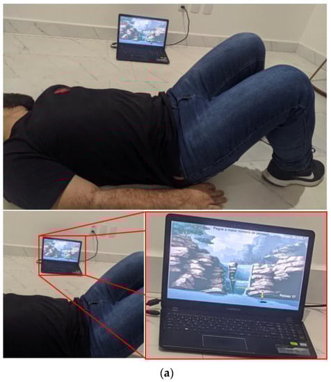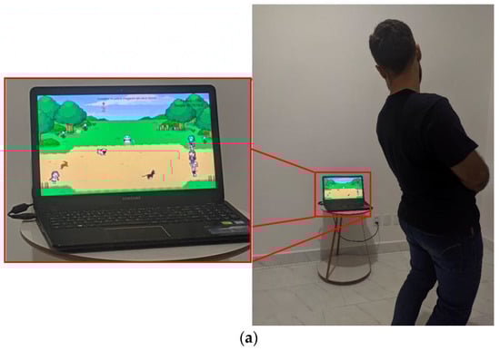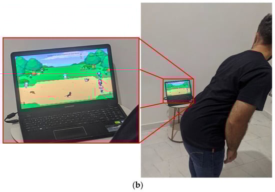 The experiments were approved by the local ethics committee, and the participant provided written informed consent prior to testing. The test subject was a 27-year-old male with a height of 1.67 cm and a weight of 65 kg. The experimental environment to test the infinite run game and park day games was a laptop with a camera positioned on a table 0.75 m high and with the subject one meter from the laptop screen. In the fishing game, the laptop was positioned on the floor, with one meter between the screen and the subject. The laptop used for developing the serious games was a Samsung with a seventh-generation Intel Core i7 processor, 2 GB NVIDIA GeForce 940 MX graphics card, 8 GB RAM, 1 TB hard drive, and a Microsoft webcam (original factory setting).