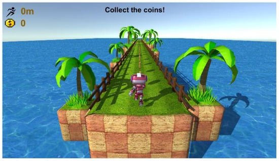Ten platforms were made for infinite run, and during the game’s execution, the platforms are aligned in sequence, forming an infinite bridge where the avatar runs. At the end of each platform, they are recycled to optimize the computational cost, making it lighter and run more smoothly.