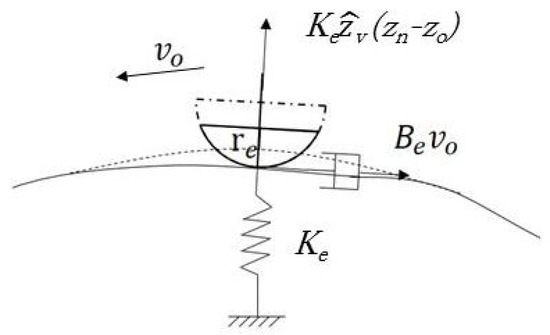 where is the unknown position vector from the center of the sensor to the contact point while is the environmental force expressed in the end-effector frame. The model of the interaction between the end-effector and the environment is shown in Figure 1.