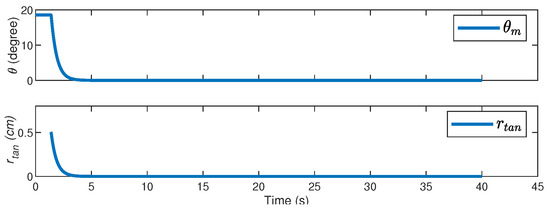 The desired dynamics of the angular axis in (35) are locally exponentially stable at the equilibrium point () in the sense that , when , which implies that when the robot is interacting with a frictionless environment.