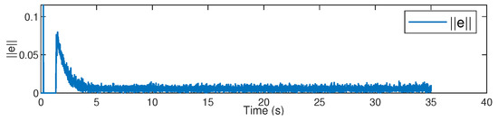 From Lemma 1, it can be seen that the closed-loop dynamics converge to the desired dynamics in (23) and (35) such that the desired impedance characteristics can be projected on the frictionless environment. Based on Lemma 2, the quaternion q (which represents the tool–environment misalignment) converges to zero, which implies that the robot end-effector aligns with the frictionless environment. Furthermore, according to Lemma 3, the end-effector can reproduce the commanded end-effector velocities on the environmental tangential plane while applying the desired amount of force in a direction normal to the environment.