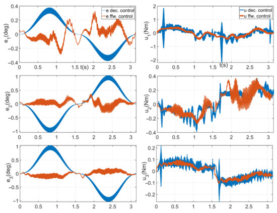 Figure 10. Trajectory tracking errors and relevant control action of the two controllers.