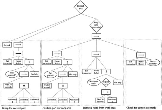 Another field of application that is of interest for the presented work, is the use of BTs to create human–machine teams, such as those used in military scenarios for human–robot team development [].
