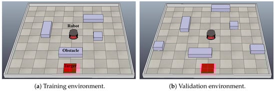 29. Tai, L.; Paolo, G.; Liu, M. Virtual-to-real deep reinforcement learning: Continuous control of mobile robots for mapless navigation. In Proceedings of the International Conference on Intelligent Robots and Systems (IROS), Vancouver, BC, Canada, 24–28 September 2017; pp. 31–36. [Google Scholar]