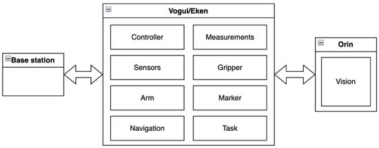 - Task package. This is the package that is responsible for initiating and managing the task received from the base station. Depending on the robot (RB-Vogui or RB-Eken) it executes the appropriate methods that perform the task and coordinates the robot’s actions. The package continuously publishes the status of the task to the system.