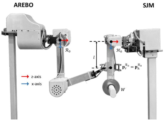 - The orientation of the human base frame with respect to the robot’s base frame; is assumed to be rotated around the -axis.