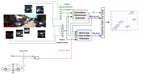 - A deep learning approach for estimating the Bird’s Eye View bounding box of the detected object, depending on encoding the object’s geometric and visual features using 1D convolution then fusing the encoded features to decode the object Bird’s Eye View translation center.