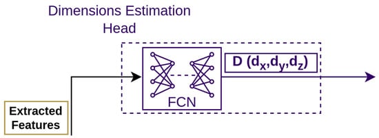 Figure 7 describes the architecture of the Dimensions Estimation Head. The number of fully connected units is (1280, 256, 3) and estimates the object dimensions.