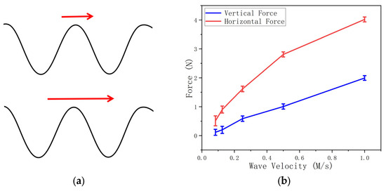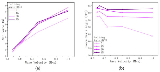 The red arrows in Figure 14c demonstrate the net force on the vertical (X-Y) plane. The traveling wave velocity positively influences the net force magnitude while maintaining a relatively stable net force direction.