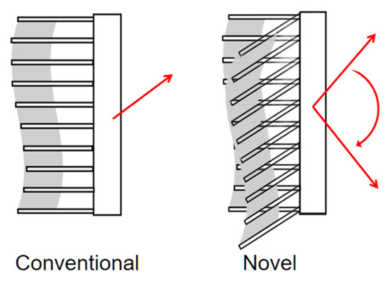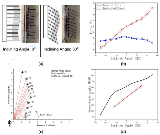 Based on the seahorse dorsal fin structure, this study aims to determine the fins’ inclination in the spine direction to develop a controllable net force orientation to provide more flexibility from a structural perspective (Figure 3b).