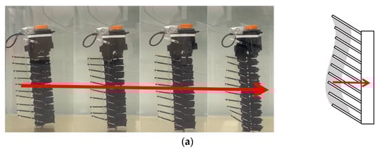 Current studies in this field are all based on fin rays’ oscillation, leading to a fixed force orientation or utilizing complicated wave features to provide more flexibility (Figure 3a). Therefore, using conventional oscillating fins, robots should equip at least two fins to achieve more maneuverability and flexibility [21,22].