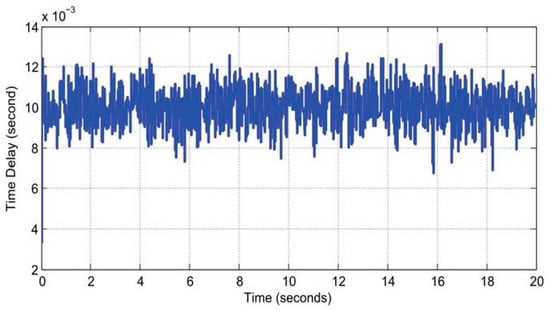 During the transmission of information between both manipulators via the communication channel, communication delays are always present. For example, the position signal with a time delay on the slave side can be considered as follows: