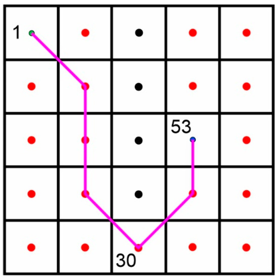 40] was used. The ant colony optimization algorithm was highly compatible and efficient for finding a large number of optimal paths. Nevertheless, it was observed that in the case of creating a dense grid with a large number of points, the ant method has the problems of a slow convergence speed, increased computational time, low search efficiency, and sometimes the optimal path could not be found but a large part of the output path converged to the optimum.