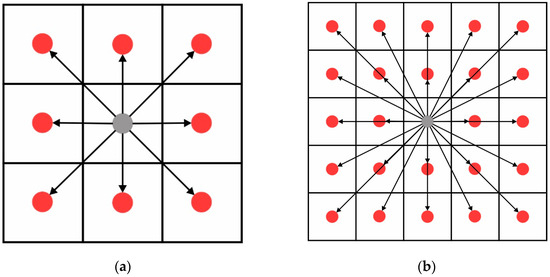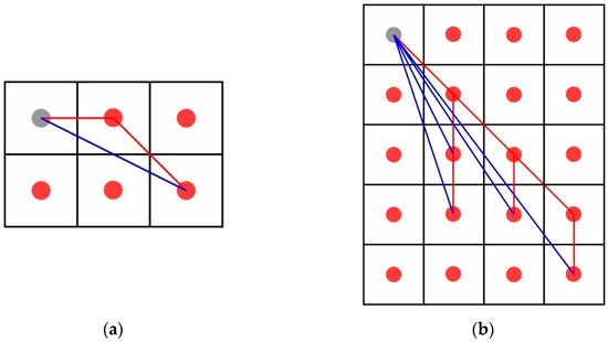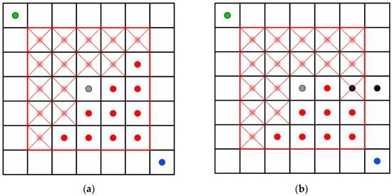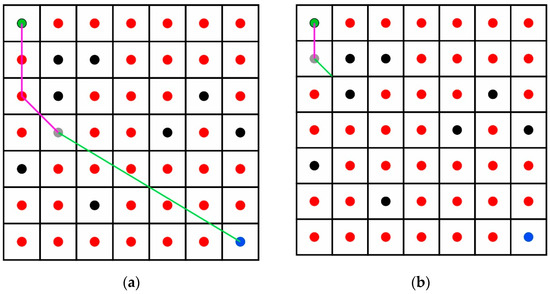37]. However, limited research has been conducted about the common adopted agent’s eight possible movement points model and their influence on the length or the formation of the formed paths. Therefore, the researchers have not yet tried to apply the existing algorithms to models with more possible movement points.