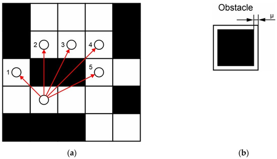 42]. The resulting path is the shortest possible path that can be obtained using the eight possible movement point models. However, as mentioned above, the integration of the ray casting algorithm and the use of the 24 possible movement points in the proposed algorithm can reduce further the length of the formed path obtained from the SOTA methods. A more accurate comparison between the proposed method and SOTA methods could only be made if researchers propose improvements to SOTA methods that adopt the 24 possible movement point model and the ray casting algorithm proposed in this paper.