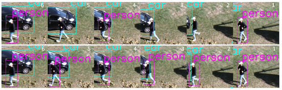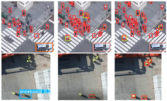 Anti-aliasing: Zhang [58] shows that the down-sampling methods used by most convolutional neural networks, such as max-pooling, strided convolutions, or average pooling, violate the Nyquist–Shannon sampling theorem, making the networks lose out on their theoretical shift invariance. The author introduces BlurPool, a simple method that applies anti-aliasing before the down-sampling layers to better retain shift invariance, and shows the modified networks are more robust to shifted inputs. Although BlurPool does not improve the VisDrone validation performance, we find that it offers a qualitative improvement on out-of-domain data. BlurPool can be added to YOLOv5 with a single line of code using the composer library (https://github.com/mosaicml/composer, accessed on 20 January 2024) calling their composer.functional.apply_blurpool() method on the model. The composer implementation sacrifices some theoretical guarantees for increased efficiency, but does offer extensive benchmarks empirically showing the benefit of this trade-off.