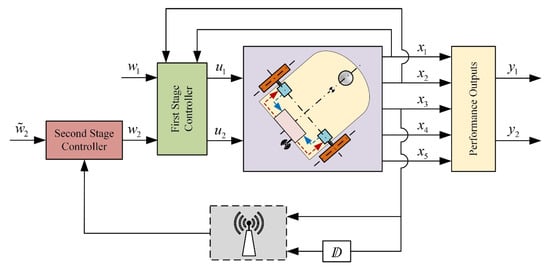 The architecture of the two-stage controller is presented in Figure 2. The internal controller will achieve the independent control of the linear velocity and the angular velocity of the vehicle, using only measurements of the angular velocities and the accelerations of the active wheels of the robot.