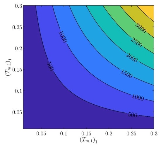 From relations (48), (51), and from Lemma 2, it can be observed that there exists a one-to-one relation between and and and . Consequently, instead of determining and , it suffices to determine and . From (62), it can be verified that the quasi-polynomial (39) becomes marginally stable for , where the following expression is used: