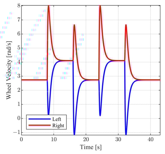 Since is the angular velocity of the mobile robot, the relation (28) can be rewritten as