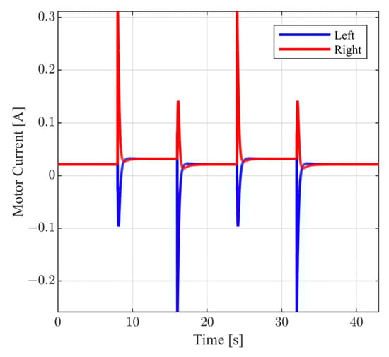 The elements of are unknown signals. The first two represent external force and torque disturbances, e.g., unmodelled effects, small-inertia obstacles, small-scale singularities of the horizontal plane, expressed as additive motor torques. The remaining two elements of are actuator faults or unmodelled effects of the circuit of the motor, expressed additively to the motor voltages. Roughly speaking, in general, the influence of is small.