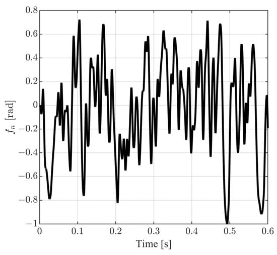 According to the Formulas (5) and (6), the additive errors and can be due to various causes like unmodeled dynamics, unexpected interactions with external objects in the workspace of the mobile robot, and voltage actuator faults, leading to deviations from the ideal behavior. Based on these observations, and taking into account the coefficients of the state modelling errors and their derivatives, it is observed that the modelling error , multiplied by , corresponds to an additive yank term and the modelling error , multiplied by , corresponds to an additive rotatum term. The I/O additive errors and will be treated as unknown but bounded signals. □