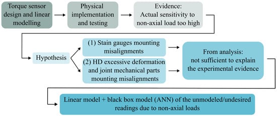 Roadmap of the analysis conducted on the sensitivity to non-axial load of the torque sensor.