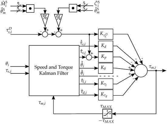 An optimum observer is used to estimate the acceleration term . Figure 8 shows a diagram scheme of the acceleration estimator, which uses both controller and measured torques.