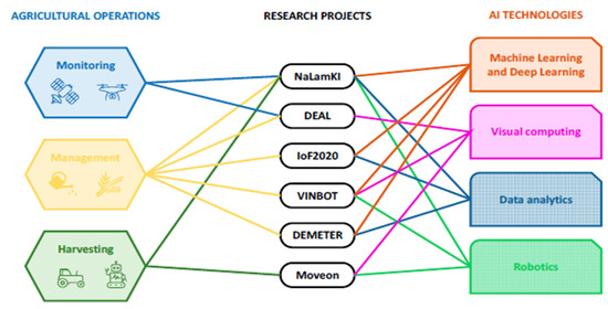 Agricultural operations and the AI-related technologies of European research projects [47].
