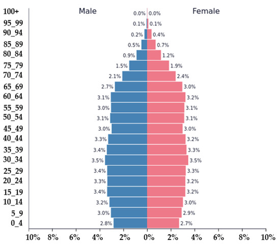 - Population Pyramids. United-States-of-America. 2023. Available online: https://www.populationpyramid.net/united-states-of-America/2023/ (accessed on 20 October 2023).